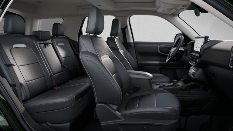 Badlands Tech Package (B&O Sound System by Bang & Olufsen, Connected Navigation, and HD Radio), Equipment Group 400A, Alloy wheels, Auto High-beam Headlights, Brake assist, Delay-off headlights, Electronic Stability Control, Front fog lights, Fully automatic headlights, Wheels: 17 Matte Black-Painted Aluminum, 4-Wheel Disc Brakes, 6 Speakers, ABS brakes, Air Conditioning, AM/FM radio: SiriusXM, AM/FM Stereo, Auto-dimming Rear-View mirror, Automatic temperature control, Compass, Driver door bin, Driver vanity mirror, Dual front impact airbags, Dual front side impact airbags, Emergency communication system: SYNC 4 911 Assist, Four wheel independent suspension, Front anti-roll bar, Front Bucket Seats, Front Center Armrest, Front reading lights, Garage door transmitter, Heated door mirrors, Heated front seats, Heated steering wheel, Illuminated entry, Knee airbag, Leather Trimmed Front Bucket Seats, Low tire pressure warning, Memory seat, Occupant sensing airbag, Outside temperature display, Overhead airbag, Overhead console, Panic alarm, Passenger door bin, Passenger vanity mirror, Power door mirrors, Power driver seat, Power passenger seat, Power steering, Power windows, Radio data system, Rear anti-roll bar, Rear reading lights, Rear seat center armrest, Rear window defroster, Rear window wiper, Remote keyless entry, Security system, SiriusXM, Speed control, Speed-sensing steering, Speed-Sensitive Wipers, Split folding rear seat, Steering wheel mounted audio controls, SYNC 4 w/Enhanced Voice Recognition, Tachometer, Telescoping steering wheel, Tilt steering wheel, Traction control, Trip computer, and Variably intermittent wipers. 21/27 City/Highway MPG