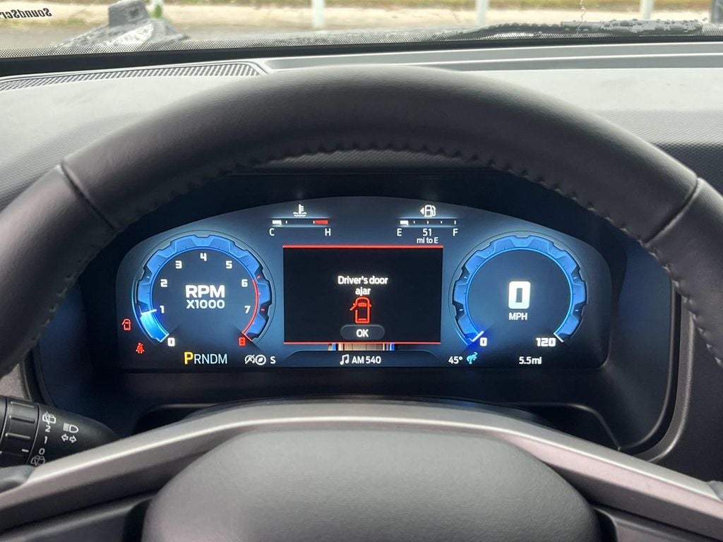 Black Diamond Package (4.46 Final Drive Ratio w/Rear Locking Differential, Auxiliary Switches, LED Fog Lamps, Powder Coated Steel Front & Rear Bumpers, Rock Rails, Washout Capable Rubberized Flooring, and Wheels: 17 Black High Gloss Painted Aluminum), Equipment Group 222A Mid Package (2-Door Intelligent Access w/Lock/Unlock, Ambient Footwell Lighting, Connected Navigation, Dr & Pass Illuminated Sliding Visor Vanity Mirrors, Dual Smart Charging USB Ports, Dual-Zone Electronic Automatic Temperature Control, Front Row Heated Seats, Power Outlet - Back Side of Center Floor Console, and Rear Parking Sensors), 4-Wheel Disc Brakes, 7 Speakers, ABS brakes, Air Conditioning, Alloy wheels, AM/FM radio: SiriusXM with 360L, AM/FM Stereo, Auto High-beam Headlights, Brake assist, Cloth Bucket Seats, Compass, Delay-off headlights, Driver door bin, Driver vanity mirror, Dual front impact airbags, Dual front side impact airbags, Electronic Stability Control, Emergency communication system: 911 Assist, Exterior Parking Camera Rear, Front anti-roll bar, Front Bucket Seats, Front Center Armrest, Front reading lights, Front wheel independent suspension, Fully automatic headlights, Heated door mirrors, Illuminated entry, Integrated roll-over protection, Leather Shift Knob, Low tire pressure warning, Occupant sensing airbag, Outside temperature display, Overhead airbag, Overhead console, Panic alarm, Passenger door bin, Passenger vanity mirror, Power door mirrors, Power steering, Power windows, Radio data system, Remote keyless entry, Security system, SiriusXM w/360L, Speed control, Split folding rear seat, Steering wheel mounted audio controls, SYNC 4, Tachometer, Telescoping steering wheel, Tilt steering wheel, Traction control, Trip computer, Variably intermittent wipers, and Wheels: 17 Carbonized Gray-Painted Aluminum.