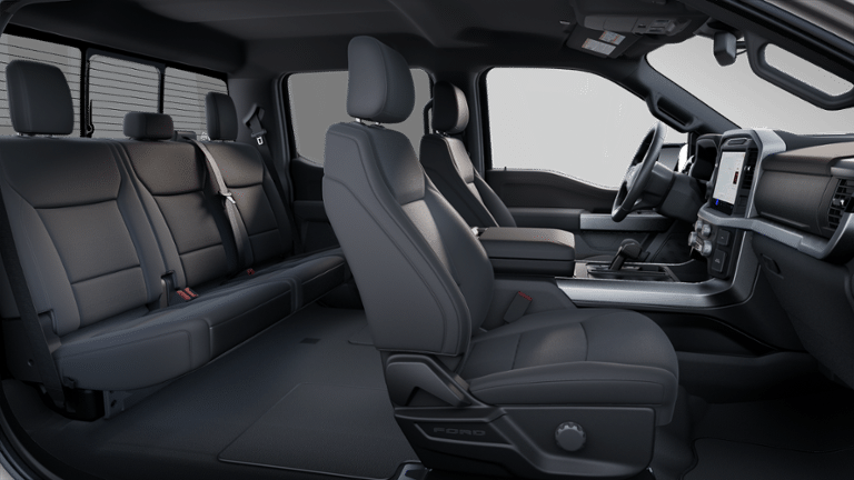 Bed Utility Package (4 Pickup Box Tie-Down Plates, LED Box Lighting, and Tailgate Step w/Tailgate Work Surface), Equipment Group 302A Mid (360 Degree Camera, 400W Cab & Bed Outlets, 6 Angular Bright Anodized Step Bar, Adaptive Cruise Control w/Stop & Go, Auto-Dimming Rear-View Mirror, Black Painted Grille w/Chrome Center Bar, Chrome Door & Tailgate Handles, Chrome Single-Tip Exhaust, Cloth 40/Console/40 Front Seats, Connected Navigation, Driver State Detection, Dual-Zone Electronic Automatic Temperature Control, Evasive Steering Assist, Ford Co-Pilot360 Assist 2.0, Front Parking Sensors, Heated Front Seats, Intelligent Access w/Push Button Start, Power Glass Heated Sideview Mirrors, Power-Sliding Rear Window, Remote Start System w/Remote Tailgate Release, Towing Technology, and Wrapped Steering Wheel), Mobile Office Package (Console Worksurface and Partitioned Lockable Rear Storage), XLT Black Appearance Package Plus (6 Black Running Boards, Black Exterior Badging, Black Grille, Body-Color Front & Rear Bumpers, Dark Interior Appliques, Dual Exhaust w/Black Tips, Floor Shifter, Gray Box Side Decal, and Wheels: 20 Gloss Black Painted Aluminum), 4WD, 4-Wheel Disc Brakes, 6 Speakers, ABS brakes, Air Conditioning, Alloy wheels, AM/FM radio: SiriusXM with 360L, Auto High-beam Headlights, Brake assist, Bumpers: chrome, Chrome wheels, Cloth 40/20/40 Front Seat, Compass, Delay-off headlights, Driver door bin, Driver vanity mirror, Dual front impact airbags, Dual front side impact airbags, Electronic Stability Control, Emergency communication system: SYNC 4 911 Assist, Front anti-roll bar, Front Center Armrest, Front fog lights, Front License Plate Bracket, Front reading lights, Front wheel independent suspension, Fully automatic headlights, Heated door mirrors, Illuminated entry, Low tire pressure warning, Occupant sensing airbag, Outside temperature display, Overhead airbag, Overhead console, Panic alarm, Passenger door bin, Passenger vanity mirror, Power door mirrors, Power steering, Power windows, Radio data system, Radio: AM/FM Stereo w/SiriusXM 360L, Rear Parking Sensors, Rear reading lights, Rear step bumper, Rear window defroster, Remote keyless entry, Security system, Speed control, Split folding rear seat, Steering wheel mounted audio controls, SYNC 4 w/Enhanced Voice Recognition, Tachometer, Telescoping steering wheel, Tilt steering wheel, Traction control, Trip computer, Variably intermittent wipers, Voltmeter, and Wheels: 18 Chrome-Like PVD.