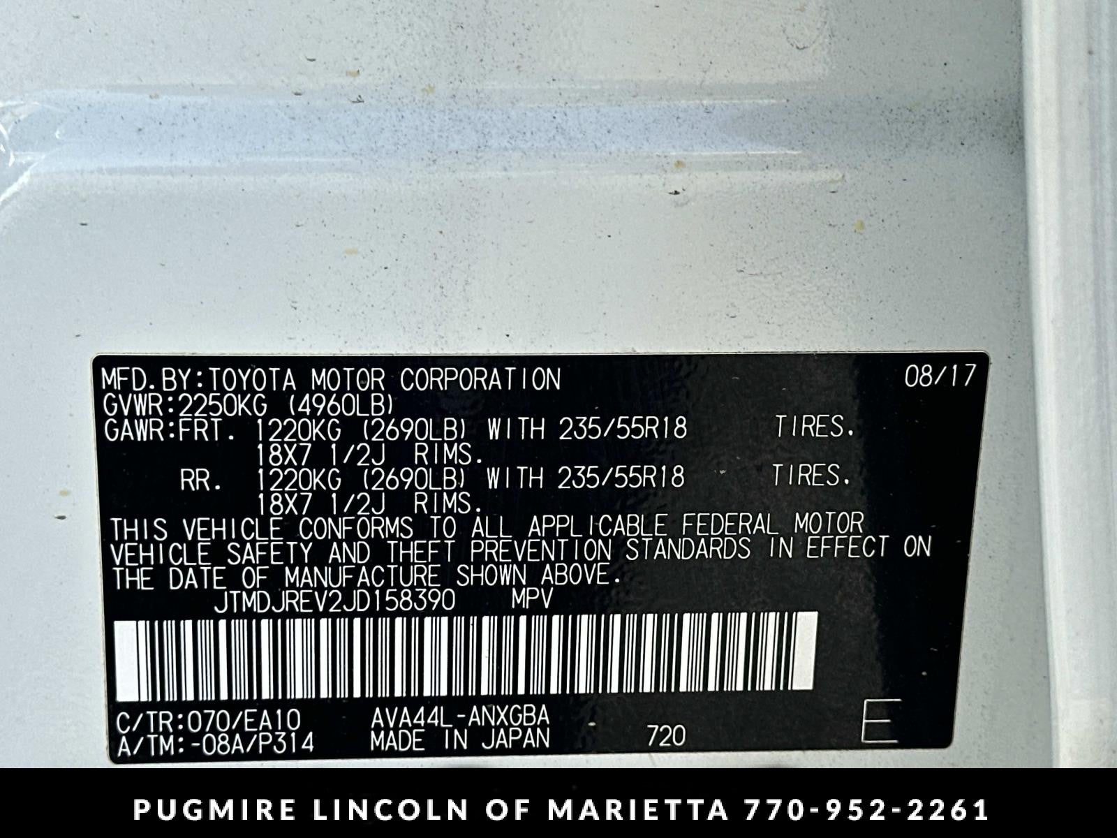 - Tires: P235/55R18H AS